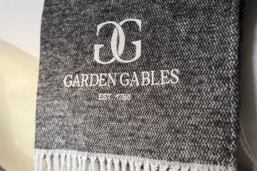 Pezzo Brushed Cotton | 50″ x 70″ | Custom-Stitched Logo Wrap yourself in the understated luxury of Garden Gables with our exclusive Frette Pezzo Throw Blanket. Crafted from brushed cotton for an ultra-soft feel, this timeless black throw features elegant white fringe and a custom-stitched Garden Gables logo—bringing a touch of boutique sophistication to any space. Designed in collaboration with Frette, the world-renowned Italian linen house, this piece is both refined and cozy, perfect for quiet evenings or elevated lounging. – Woven from 100% brushed cotton – Custom-embroidered with Garden Gables – Sized generously at 50″ x 70″ A signature keepsake that reflects the warmth, style, and comfort of your stay.